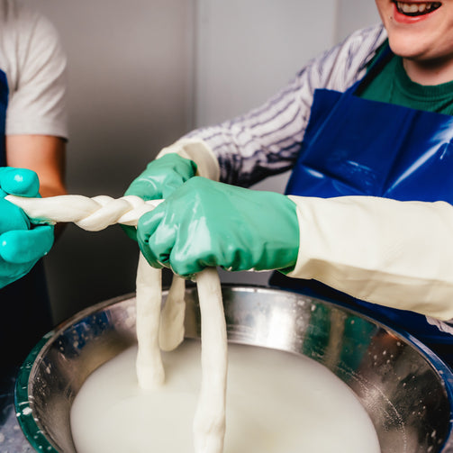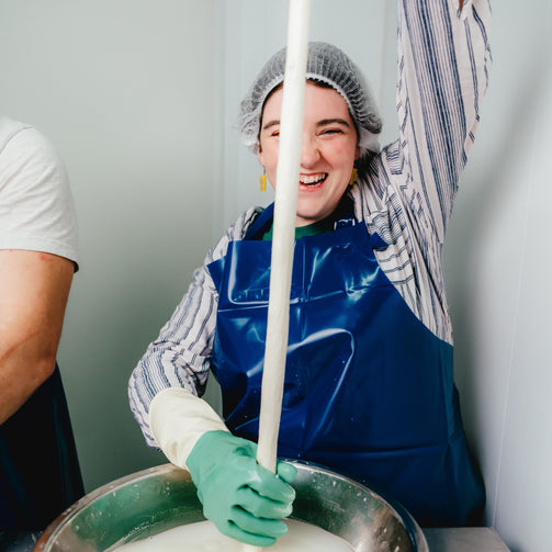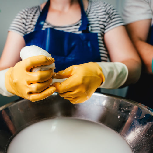 As pasta filata cheeses take about a day to make, and the class is only 1 hour in length, we've done the laborious bits ahead of time and saved the fun for you (and the clean-up for us!). During the class you’ll get to perform the filatura process (spinning the curds in hot water). You'll get to knead the curds into a malleable and stretchy dough, and then make the decision on what end shape you would like them to result in (perhaps form it into large balls of mozzarella or smaller bocconcini; maybe you'd like to stretch it into ropes and braid it or roll it up into an Oaxaca-like ball). Whatever you end up creating, it will be yummy, and you'll get to take it home with you!